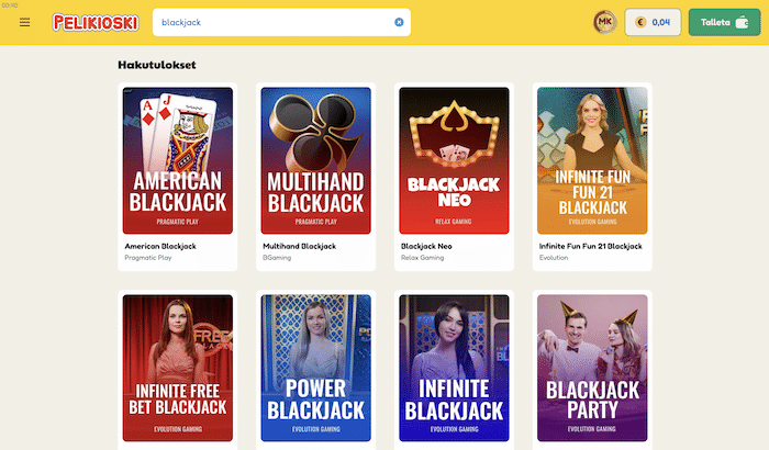 Me pelaamme Pelikioskilla mieluiten Evolutionin Blackjack Partya, jonka tunnelma on hieman perusblackjackeja eläväisempi. Siinä panoskoot vaihtelevat 5 – 5 000 euron välillä, ja pöydän täyttyessä peliin pääsee mukaan Bet Behind -panoksilla.