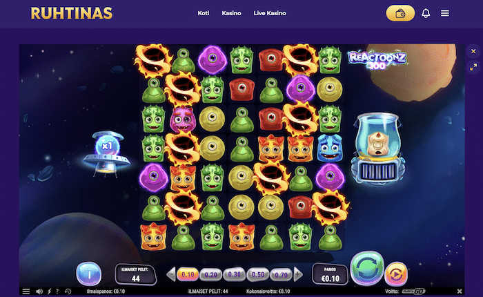 - Ilmaiskierrospeli: Reactoonz 100 (korkea volatiliteetti)