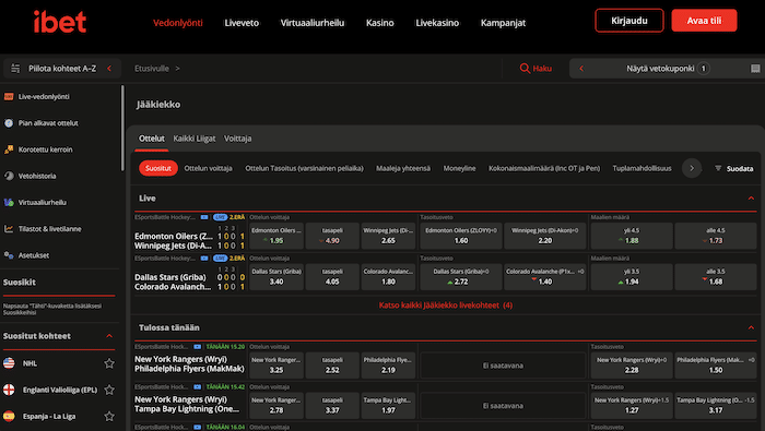 Pelit.comin vedonlyöntispesialistin mielestä tämän hetken kovin vedonlyöntikasino on iBet. iBetin paremmuus korostuu juuri nyt jääkiekon kertoimissa ja monipuolisissa vetovaihtoehdoissa, mutta me arvostamme myös iBetin innovatiivisia vedonlyöntitarjouksia (esim. ACCA-vakuutus ja ilmaisvetoklubi).